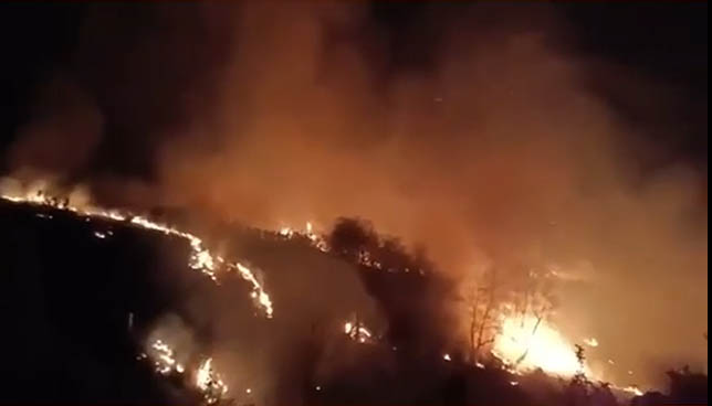Durante la madrugada de hoy, el fuego en Cabuérniga llegó a cortar en ambos sentidos la carretera autonómica CA-182, que une el Valle de Cabuérniga y Puentenansa.