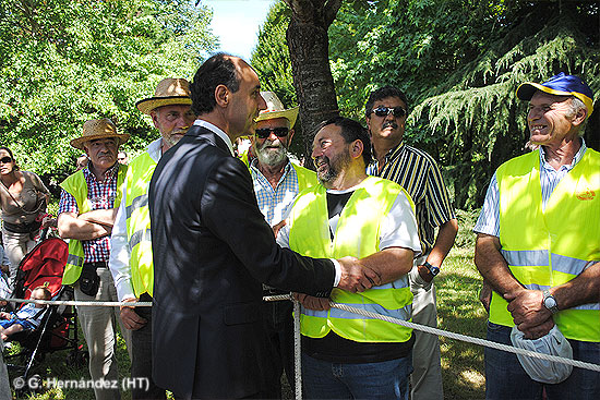 Una veintena de afectados por la Ley de Montes han acudido hoy a Puente San Miguel, donde se celebraba el Día de las Instituciones. Los propietarios han abordado al presidente regional antes de la entrada en la iglesia, y durante unos minutos le han explicado lo desesperado de su situación, mientras que él les ha asegurado que su Gobierno trabaja en las soluciones. «Es feo que unos viejos como nosotros tengamos que estar todo el día por ahí», ha dicho al presidente una de las afectadas. «No, feo no, es incómodo», ha respondido Diego.