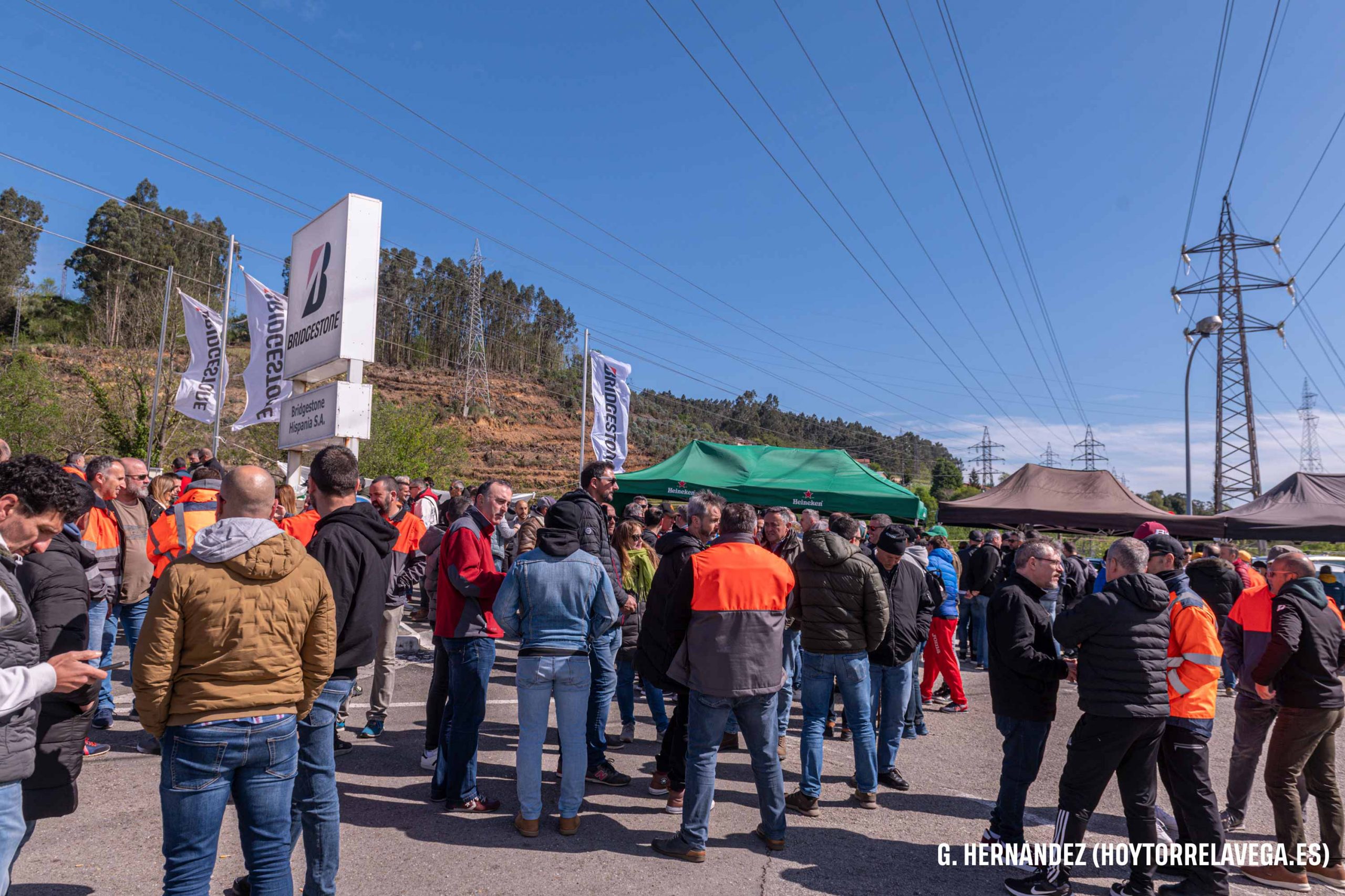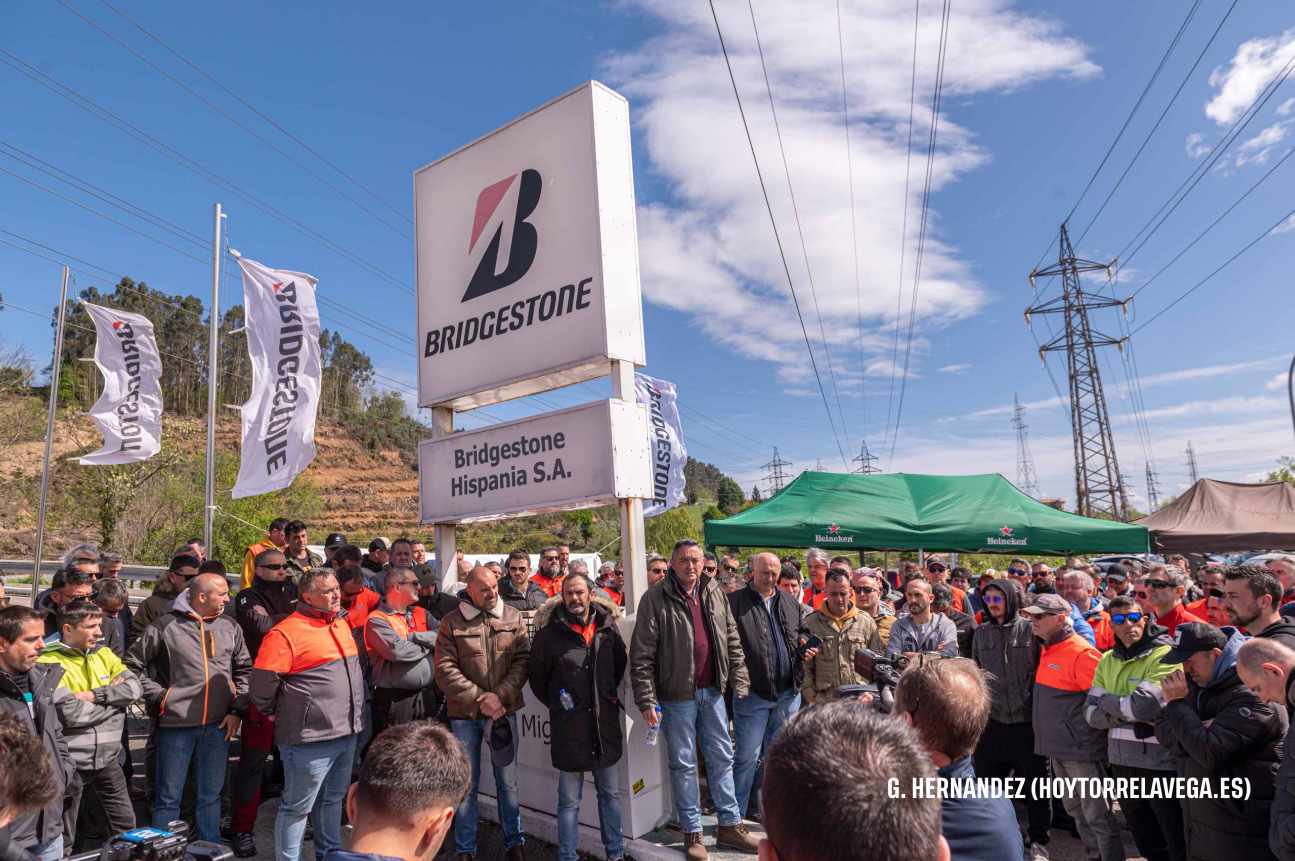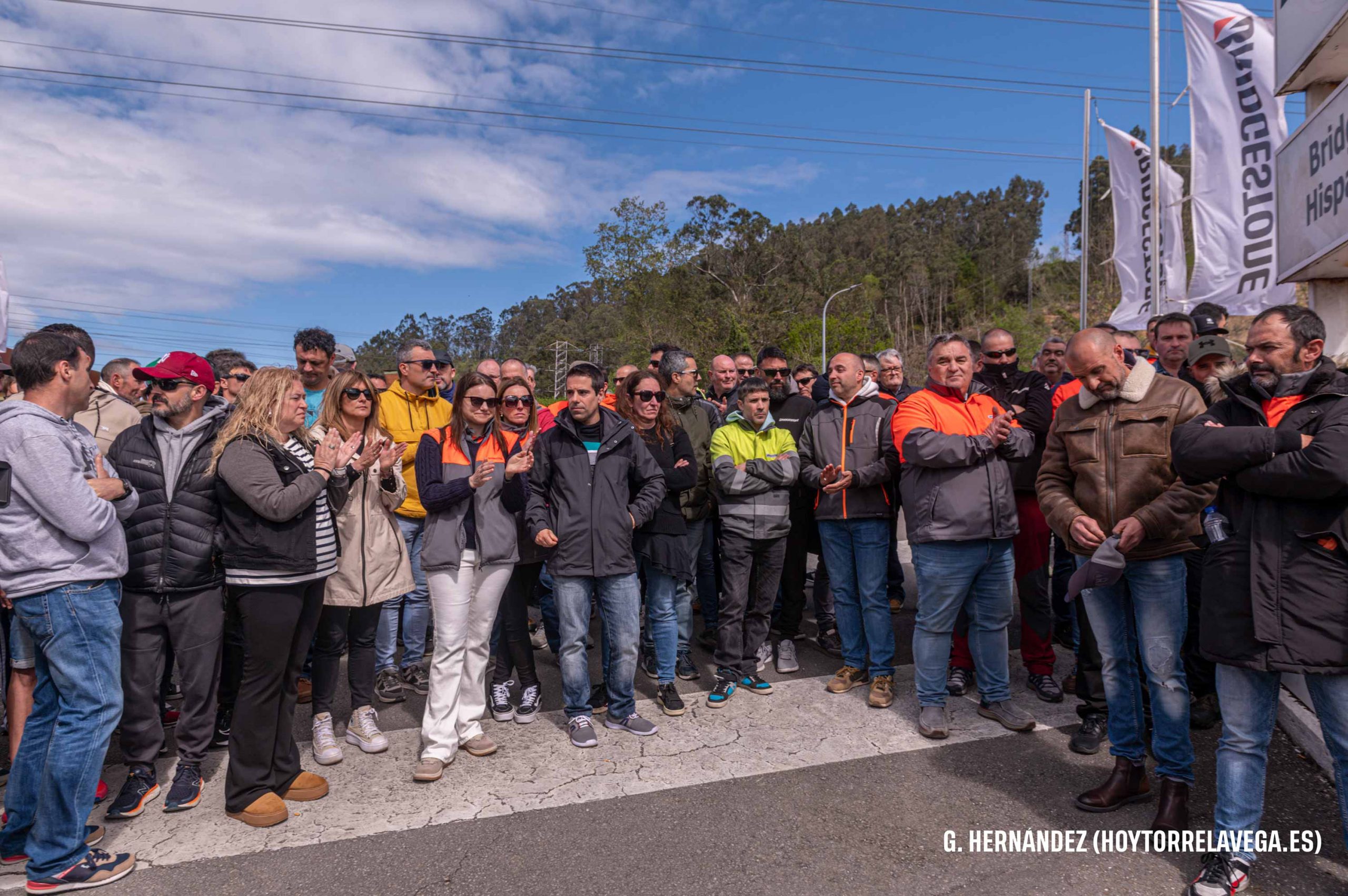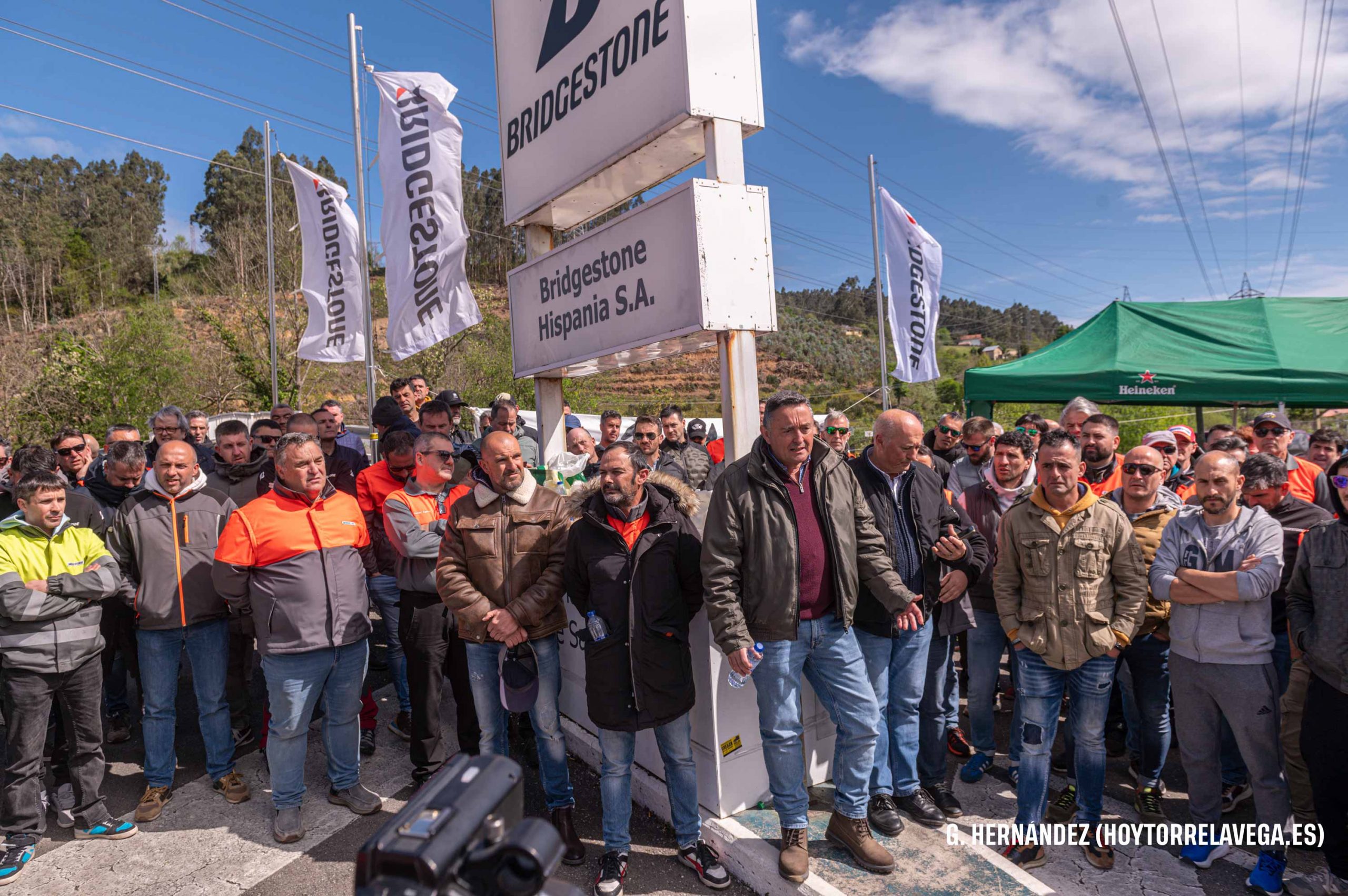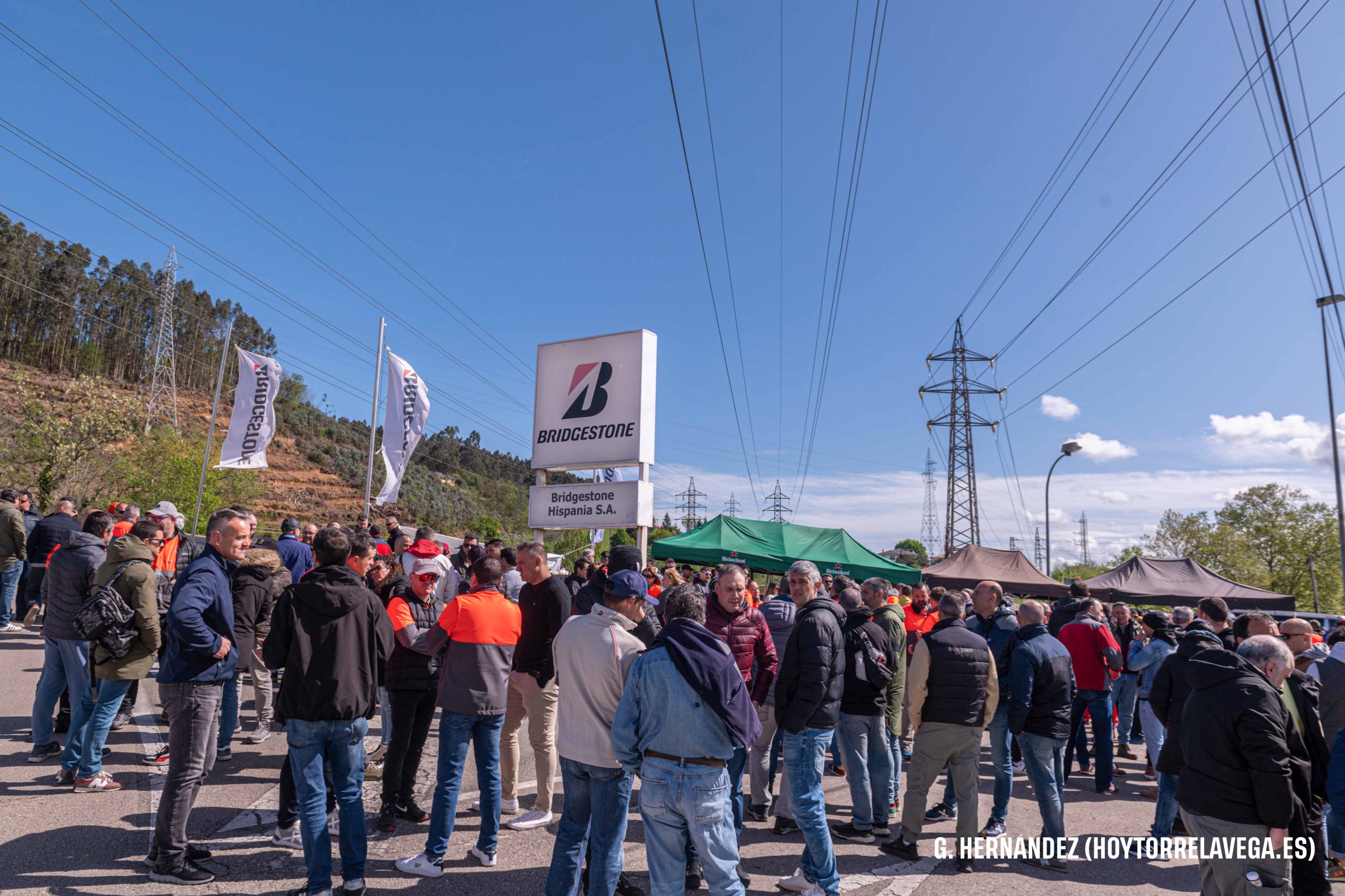 Los trabajadores han celebrado una pequeña asamblea para comunicar las nuevas movilizaciones Trabajadores de Bridgestone concentrados a la entrada de la planta en la última jornada de huelga Bridgestone Bridgestone Hispania Bridgestone Puente San Miguel