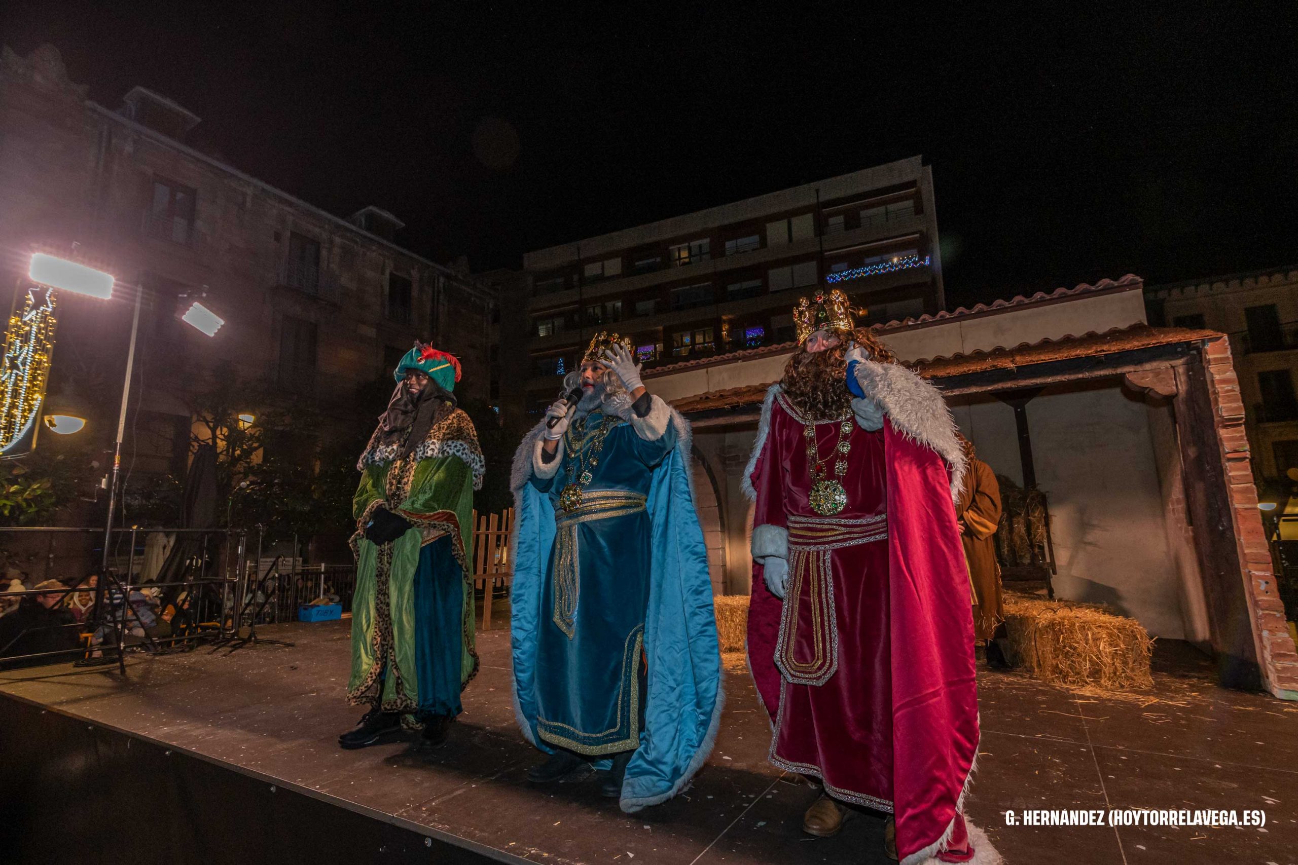 Tras su encuentro con Herodes, Melchor, Gaspar y Baltasar han continuado su recorrido a pie hasta hasta el Bulevar Demetrio Herrero, frente al Palacio Municipal, donde estaba instalado el Belén.