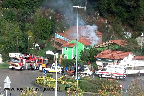 El suceso tuvo lugar en torno a las 12 del mediodía del viernes, en una vivienda de dos plantas situada junto a la rotonda de Ganzo que da acceso a Sierrallana y frente al colegio Matilde de la Torre, como se puede apreciar en la foto remitida a HoyTorrelavega por una testigo. Hasta el lugar se desplazaron varios coches de la Policía Local, asistencias sanitarias y efectivos del Parque de Bomberos de Torrelavega, que no tuvieron dificultades para controlar el incendio.